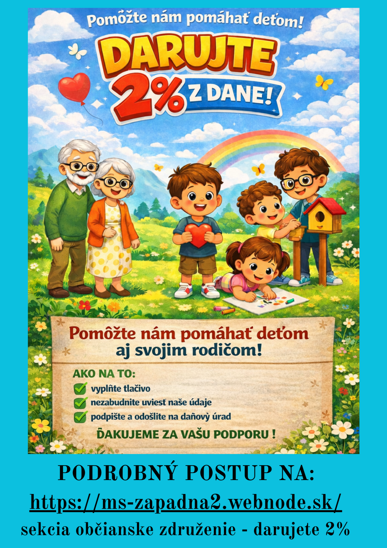 Vážení rodičia, budeme Vám vďační ak sa rozhodnete venovať Vaše 2% zo zaplatených daní práve nášmu Občianskemu združeniu.